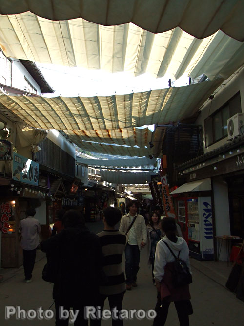 鳥居に至る道にはお土産モン屋さんが立ち並ぶ商店街があり