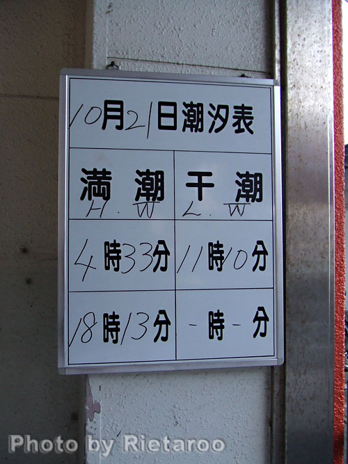 乗り口のトコロに干潮/満潮の時刻が。なんとなく親切。