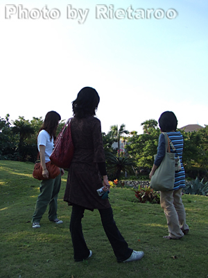NちゃんとKNっぴ、E嬢はパーク内のイスに座っておしゃべりタイムに、