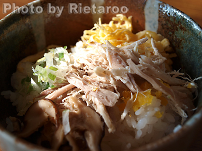 ほかほかご飯の上にのっけて、鶏出汁の利いた汁をかけてかっこむ。