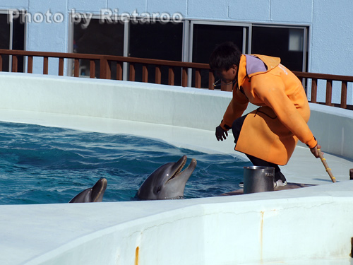 「人に慣れているイルカたちなので、遠慮せずに触れ合ってください。