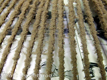 それを繰り返してアミ全体を覆ったら、重曹を振りまいて行く。