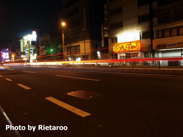 母上を待ってる間に無意味に撮った夜の道の写真です。