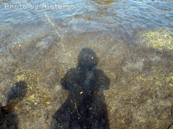 自分と甥っ子1号の影が水面に…とか。