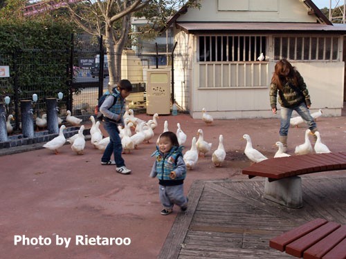 何故かアヒルを追いかけたおす妹家族。