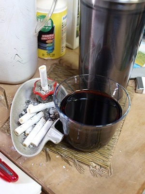 仕事を終えた親父サマーがとりあえず道具だけ置いて