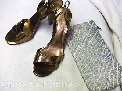 ゴールドのパンプスと巻き物、