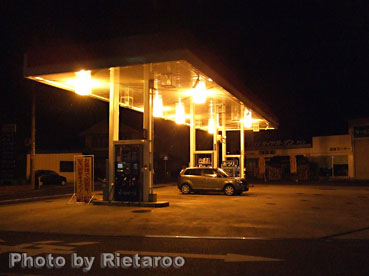 とか思ってたら見えてきました24時間営業のセルフスタンド。